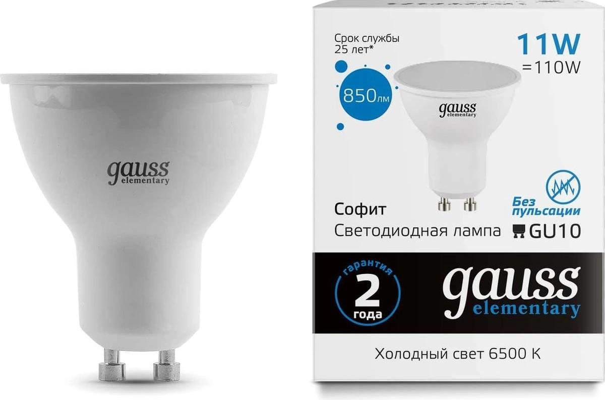 Лампа светодиодная Gauss Elementary 13631 11Вт цок.:GU10 софит 220B св.свеч.бел.хол. MR16 (упак.:10шт)