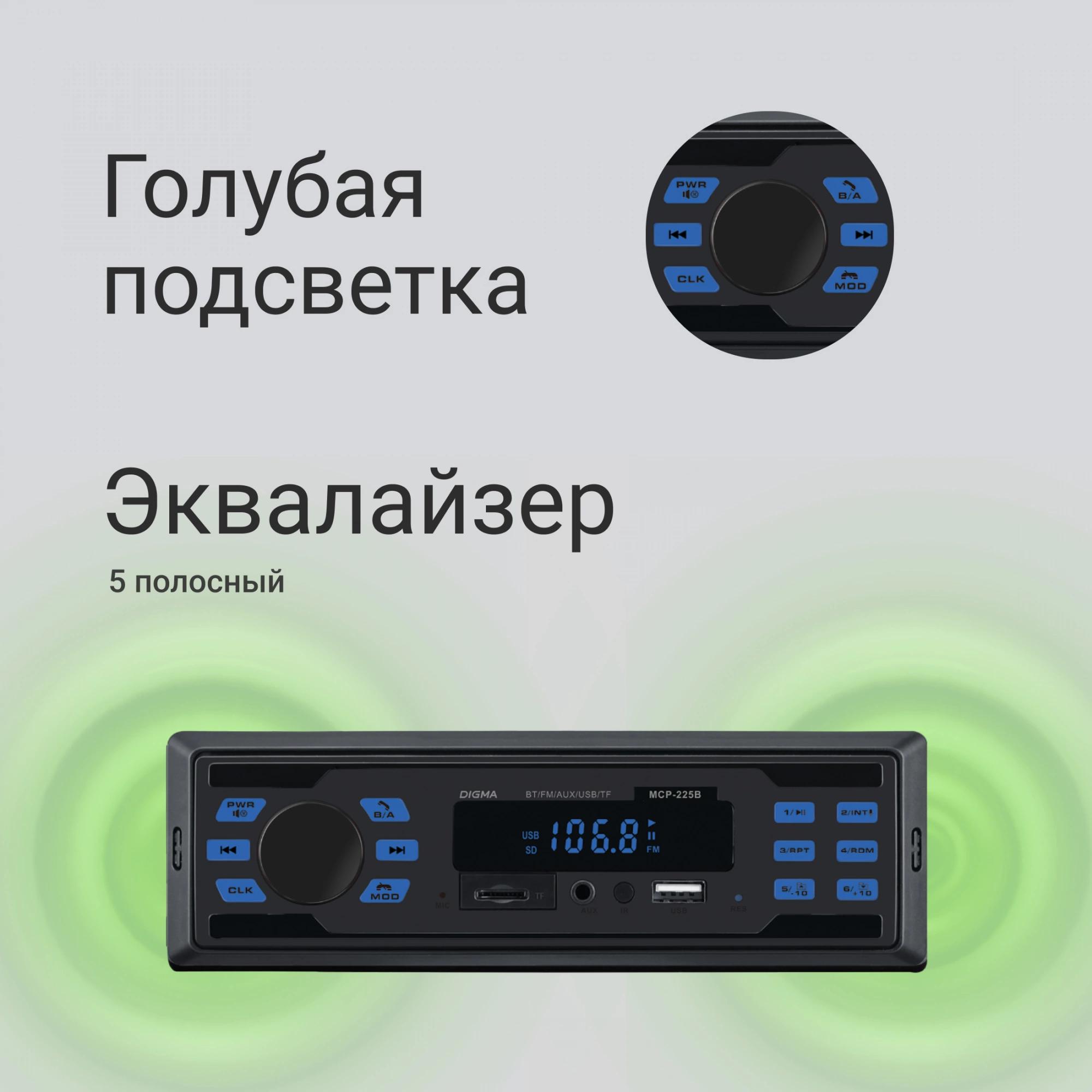 Автомагнитола Digma MCP-225B 1DIN 2x45Вт v5.0 AUX 2