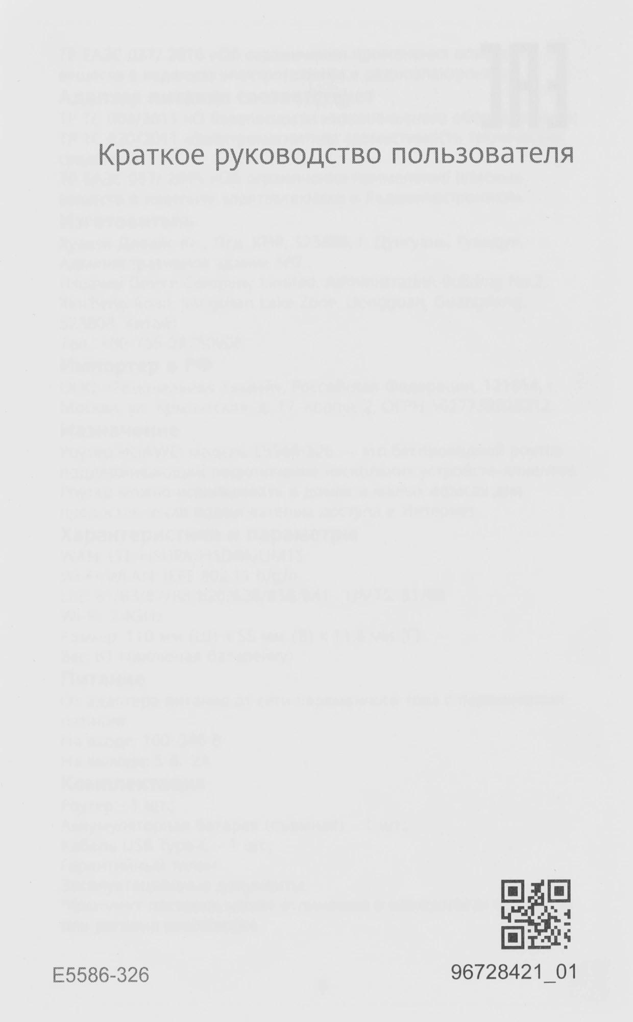 Модем 3G/4G Huawei E5586-326 USB Type-C Wi-Fi Firewall +Router внешний черный