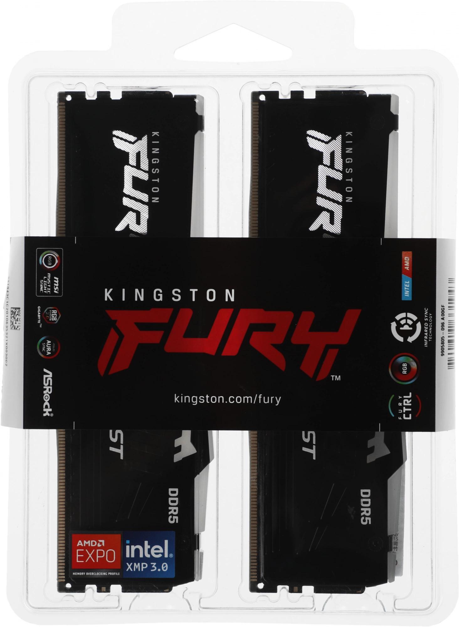 Память DDR5 2x8GB 5600MHz Kingston KF556C36BBEAK2-16 Fury Beast Black RGB RTL Gaming PC5-44800 CL36 DIMM 288-pin 1.25В kit single rank с радиатором Ret