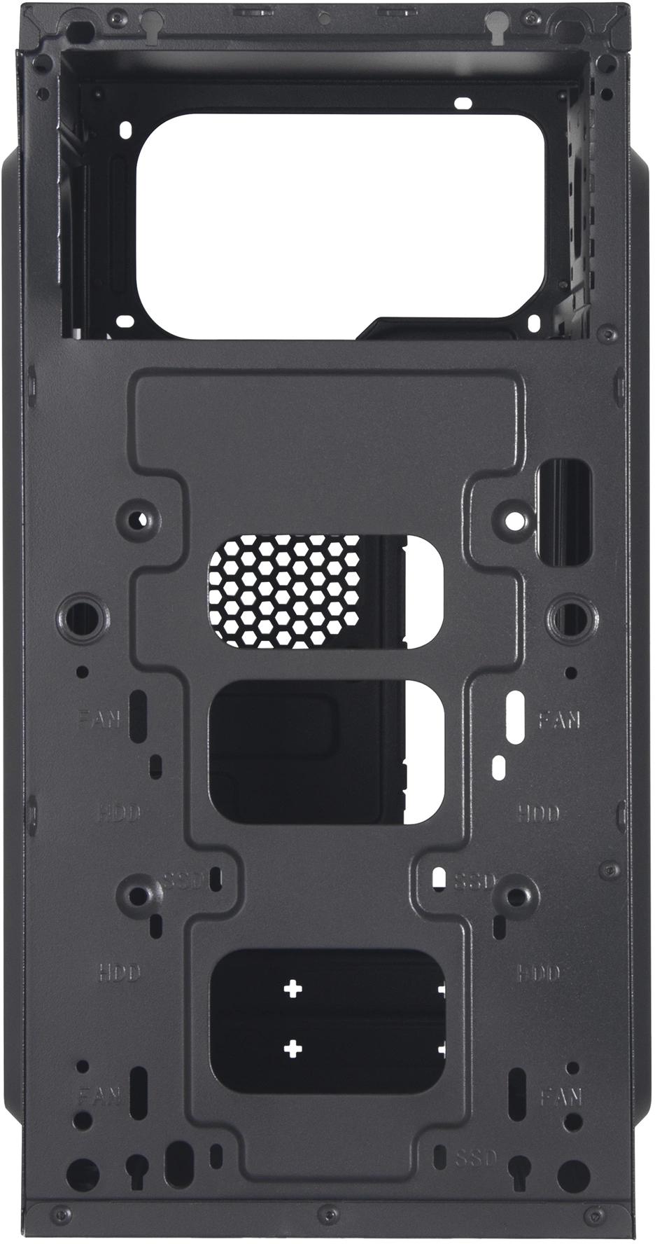 На нижней панели возможна установка 1*2, 5 шт SSD или 1*3, 5 HDD. На передней панели возможна установка 1*120 мм вентиляторов, либо 1*2, 5 шт SSD, либо 1*3, 5 HDD. Одновременная установка всех устройств не предусмотрена.