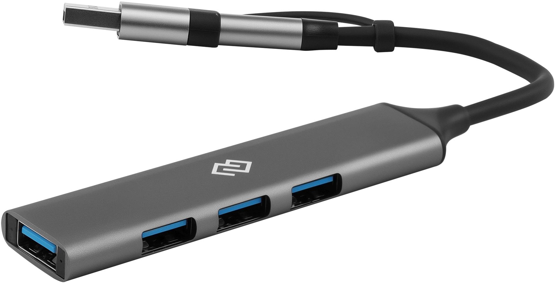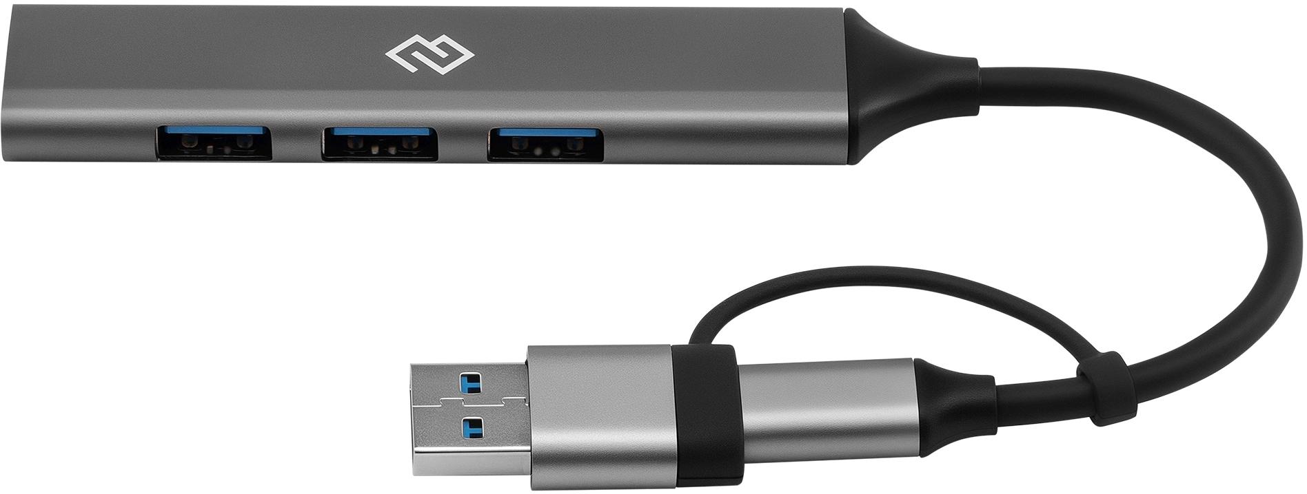 Разветвитель USB-C + USB-A Digma DHUB-4USB-AC-3.0 4порт. серебристый