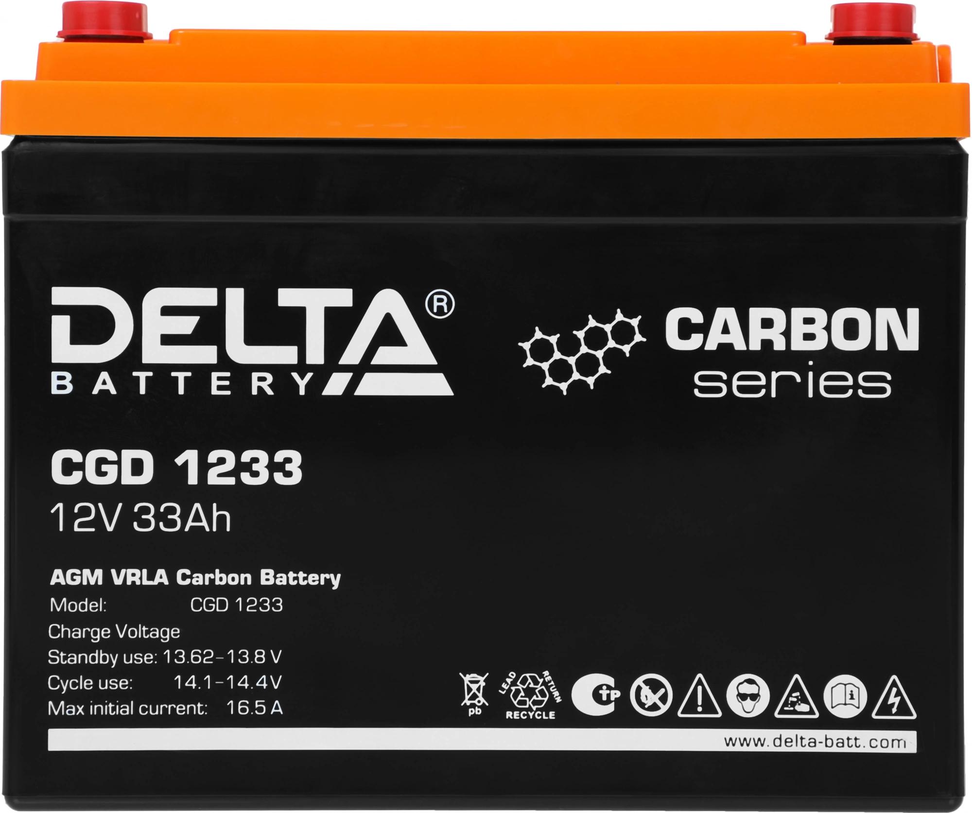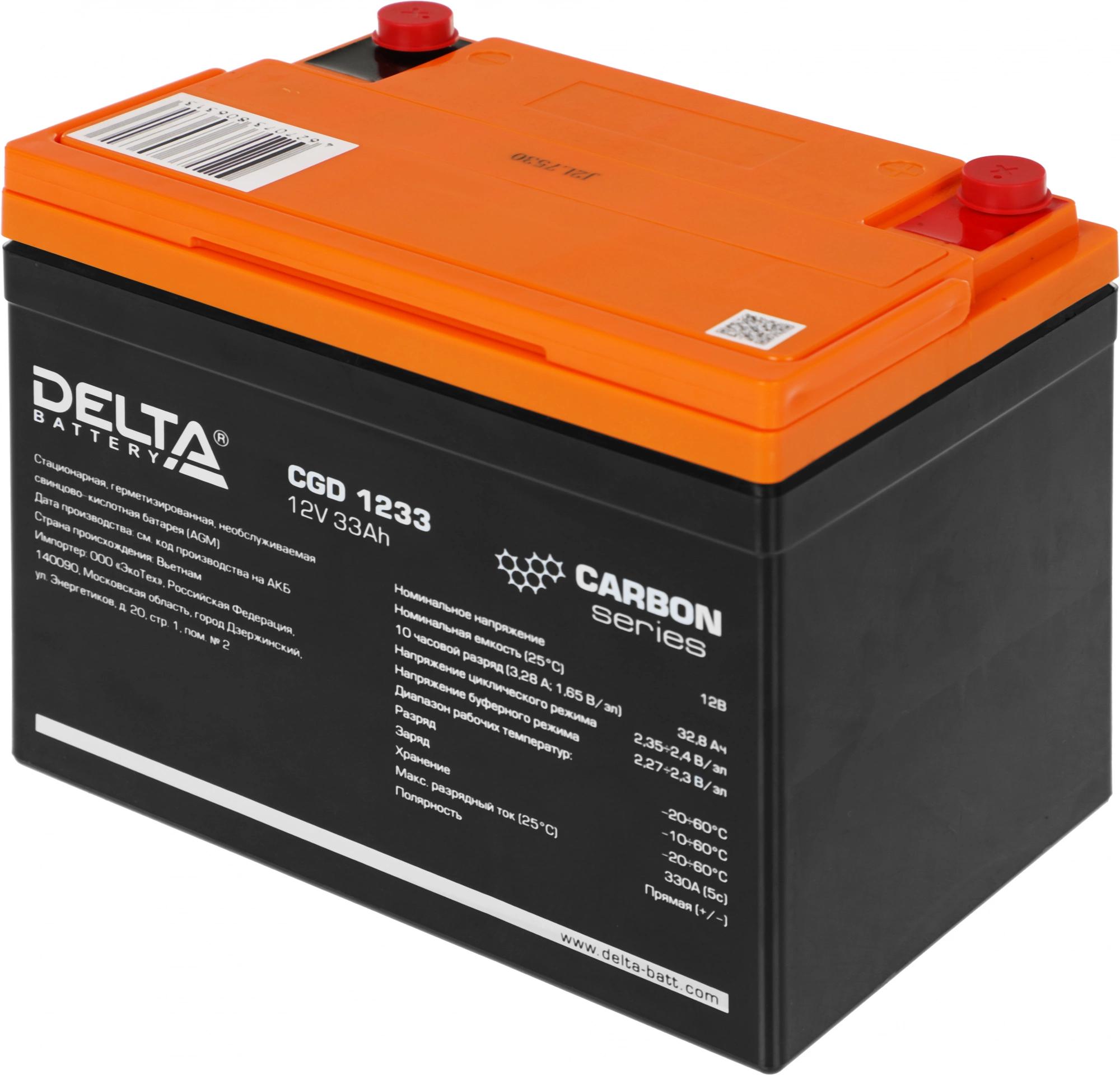 Свинцово-кислотный аккумулятор Delta линейки CGD выпускается с напряжением 12 В и ёмкостью 33 Ач. В основе лежит технология AGM, жидкий электролит удерживается внутри стекловолоконных сепараторов неподвижно.