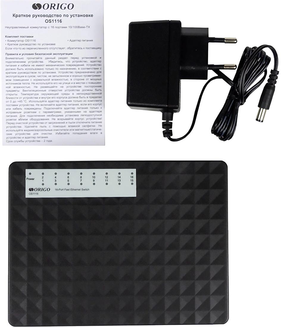 Коммутатор OS1116, адаптер питания, документация.