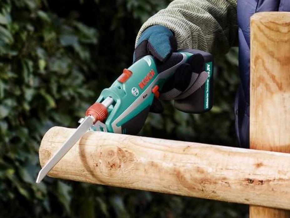Сабельная пила, А-образный упор, документация, зарядное устройство, пильное полотно.