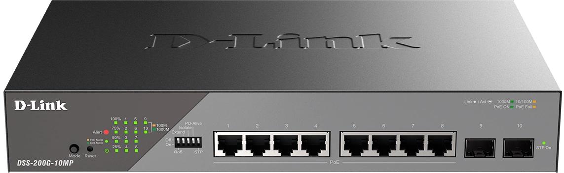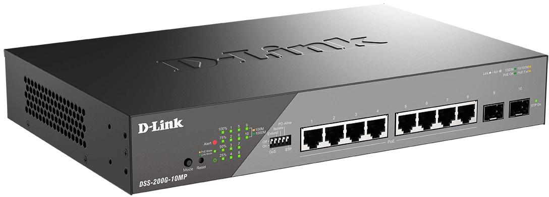 Коммутатор DSS-200G-10MP, кабель питания, краткое руководство по установке.