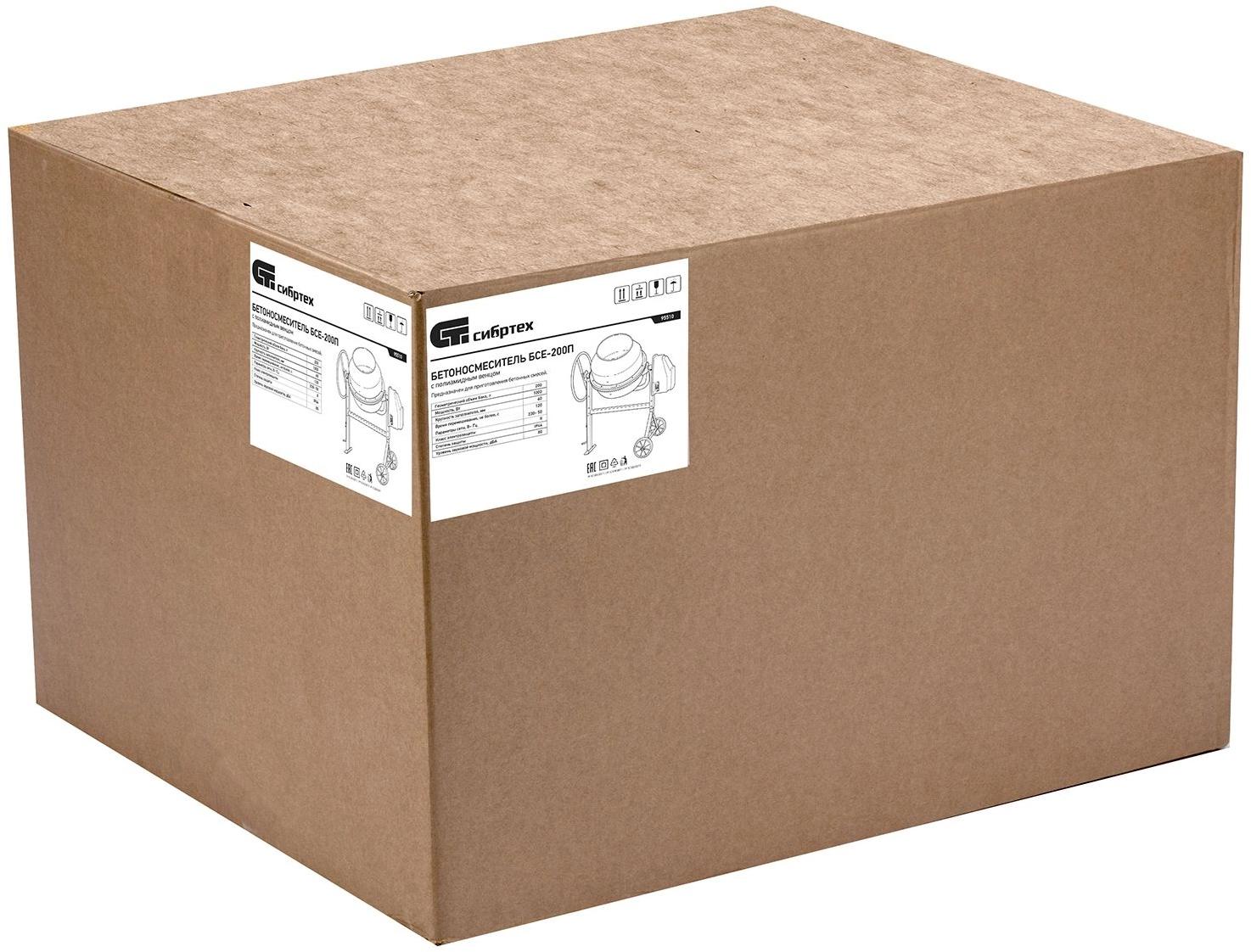 Бетоносмеситель в разборе, комплект крепежа, уплотнительная лента, привод, руководство по эксплуатации.