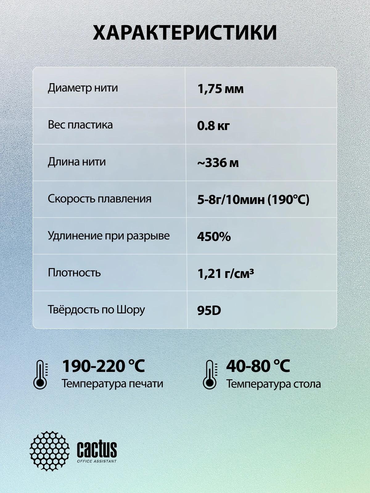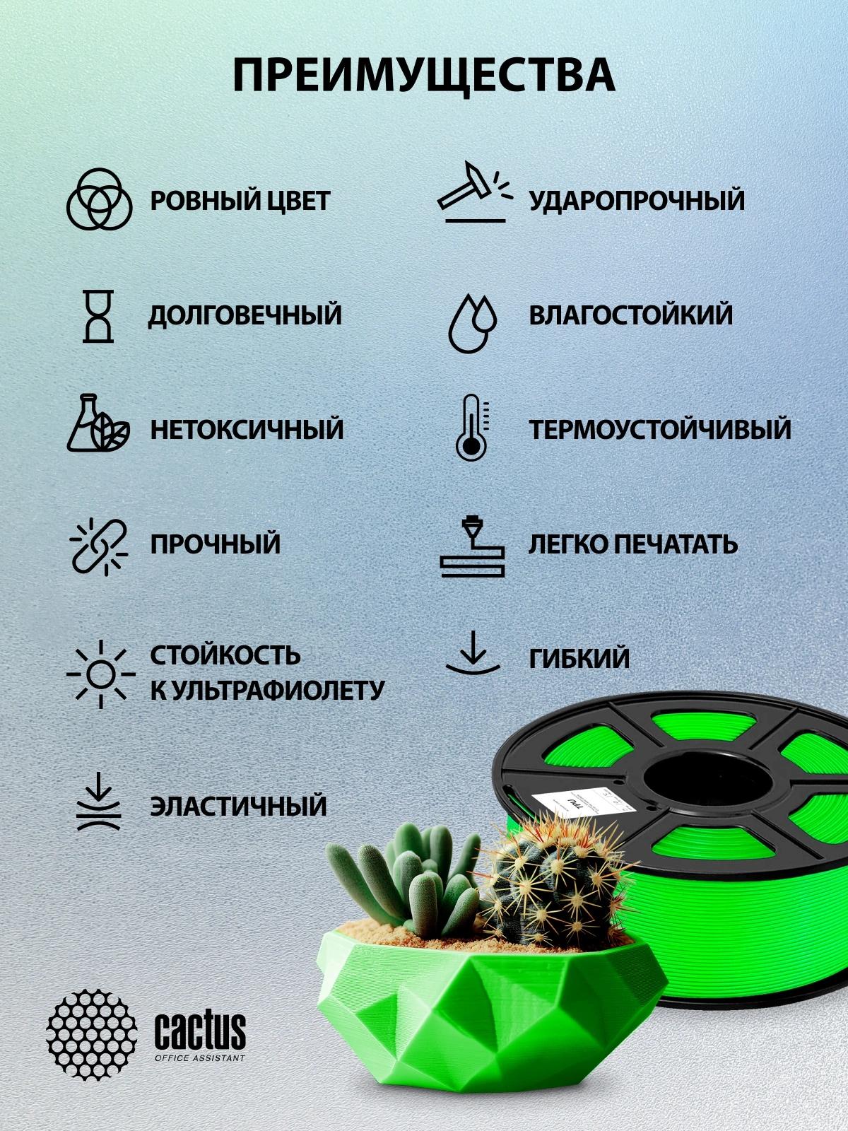 Пластик для принтера 3D Cactus CS-3D-TPU-0.8KG-GREEN TPU d1.75мм 0.8кг L336м 1цв.