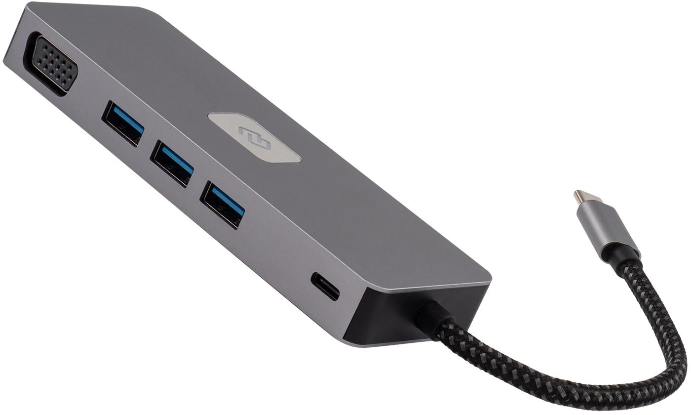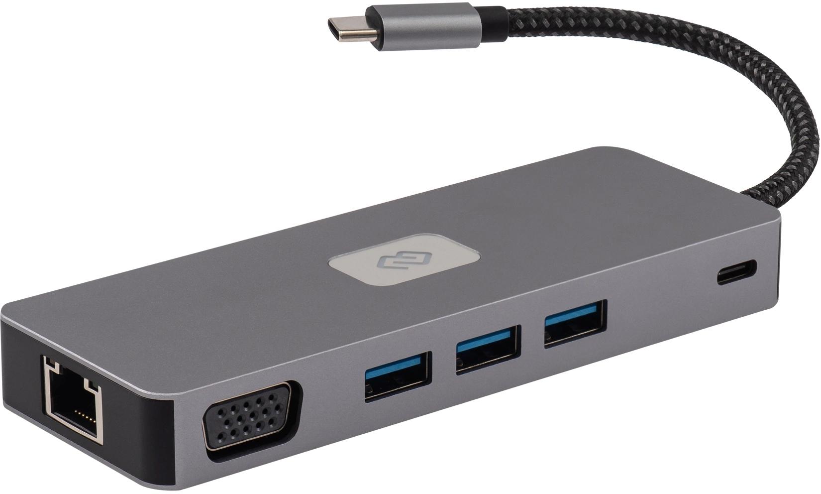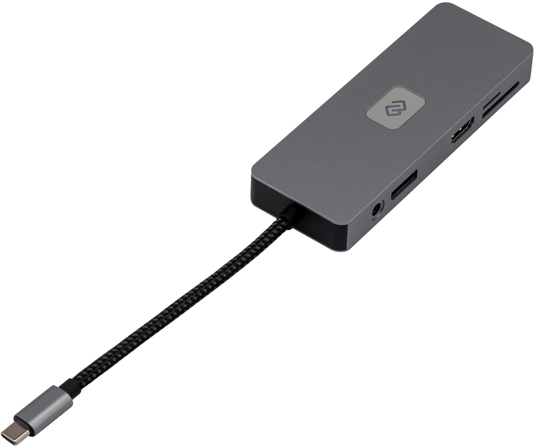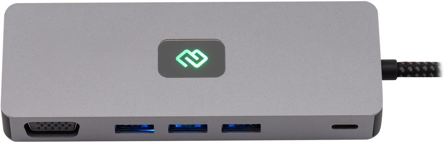 Type-C док-станция DIGMA, 11 портов. 1x HDMI( 4K@60Hz) +1 x DisplayPort ( 4K@60Hz) + 1 x VGA (Full HD@60Hz) +3 x USB-A 3.2(10Gbps) + 1 x Gigabit Ethernet + 1 x USB-C PD 3.0 100W + 1 x 3.5mm Audio + SD+ TF/MicrоSD