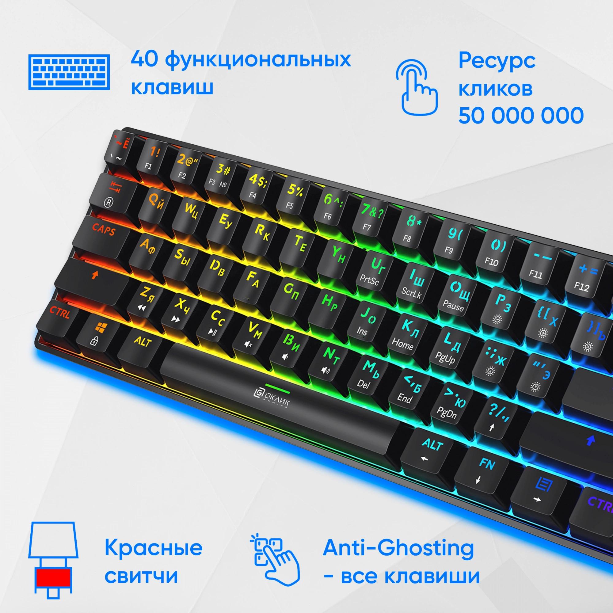 Компактная механическая клавиатура с реализованной технологией Hot-Swap. Яркая RGB-подсветка с возможностью настройки. Свитчи красные линейные (Huano)
