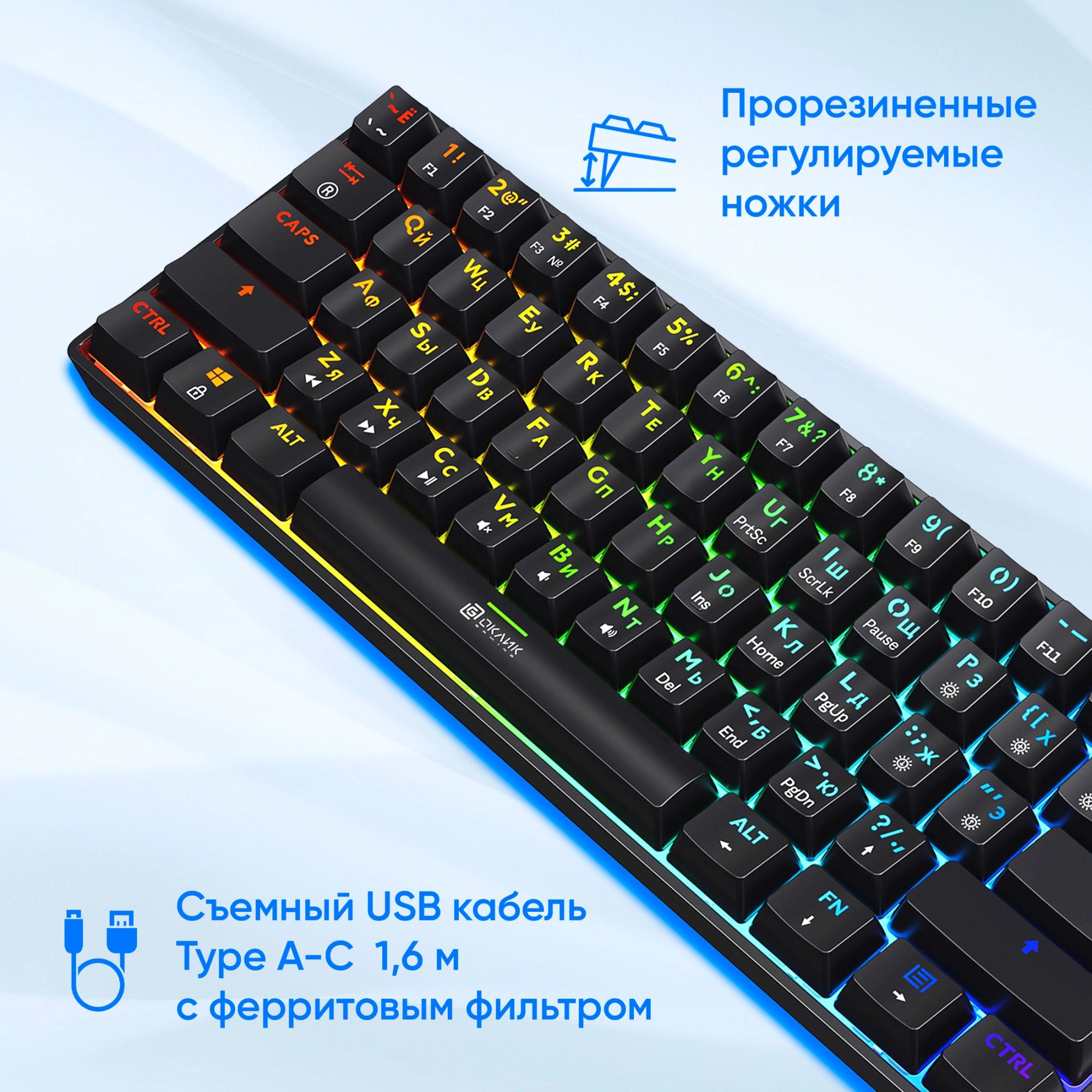 Клавиатура Оклик K713X механическая черный USB Multimedia for gamer LED