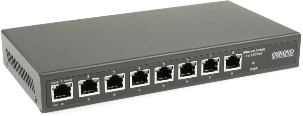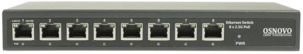 Коммутатор 2.5G Ethernet на 8 RJ45 портов. Порты: 8 x 2.5G (10/100/1000/2500Base-TX). Изоляция портов (VLAN). Auto MDI/MDIX. Встроенная грозозащита 3кВ. В комплекте БП DC12V(2A). Размеры (ШхВхГ): 223x28x113мм. Рабочая температура: -10...+55 гр. С.
