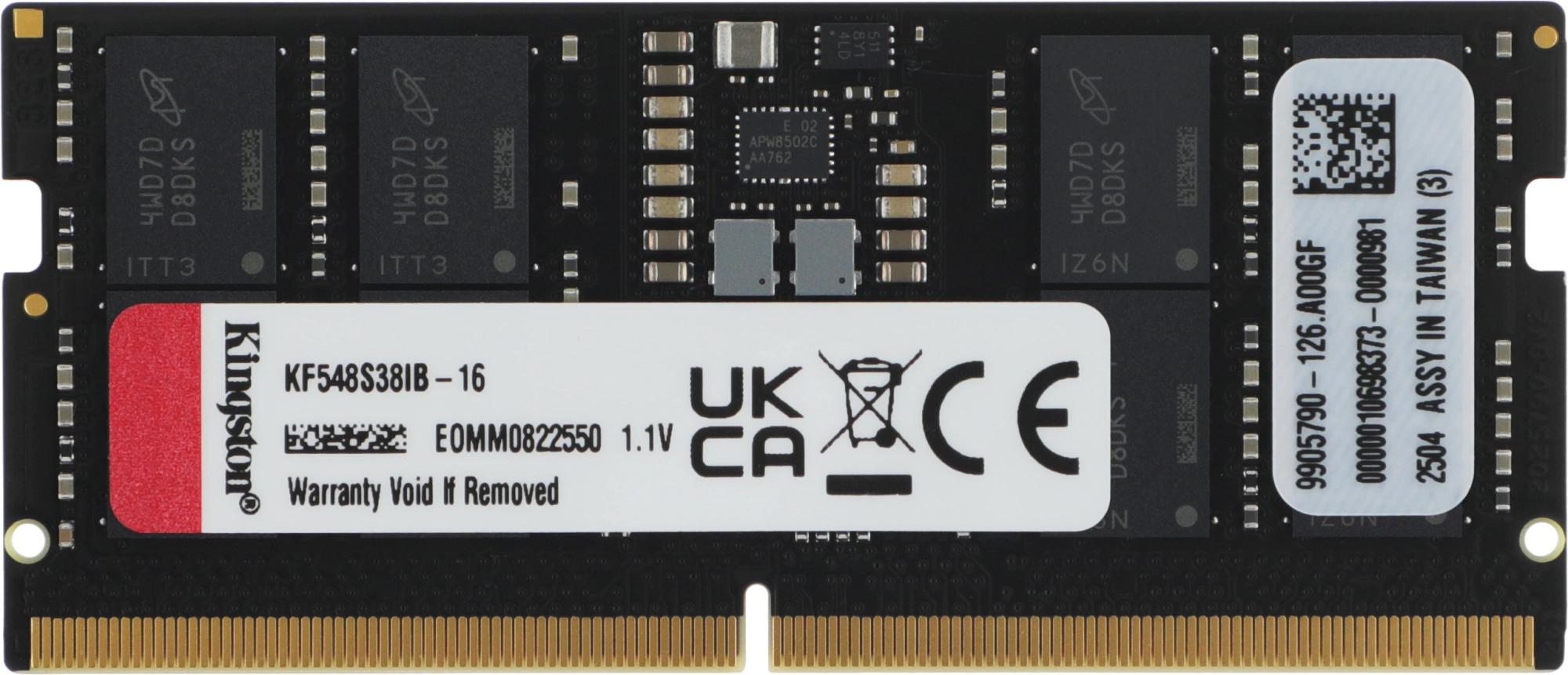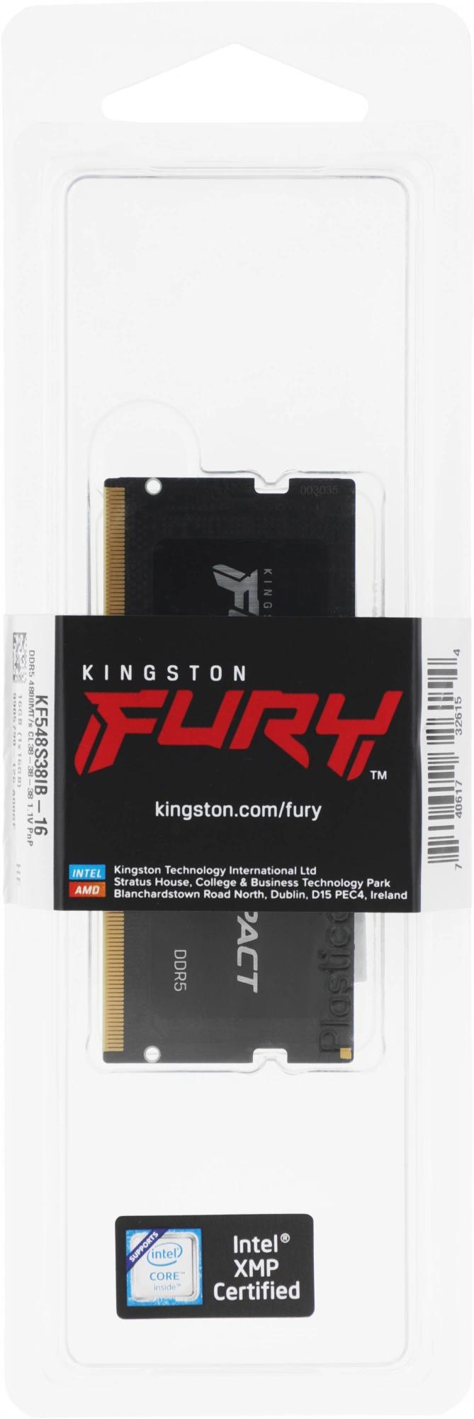 Память DDR5 16GB 4800MHz Kingston KF548S38IB-16 Fury Impact RTL PC5-38400 CL38 SO-DIMM 262-pin 1.1В single rank Ret