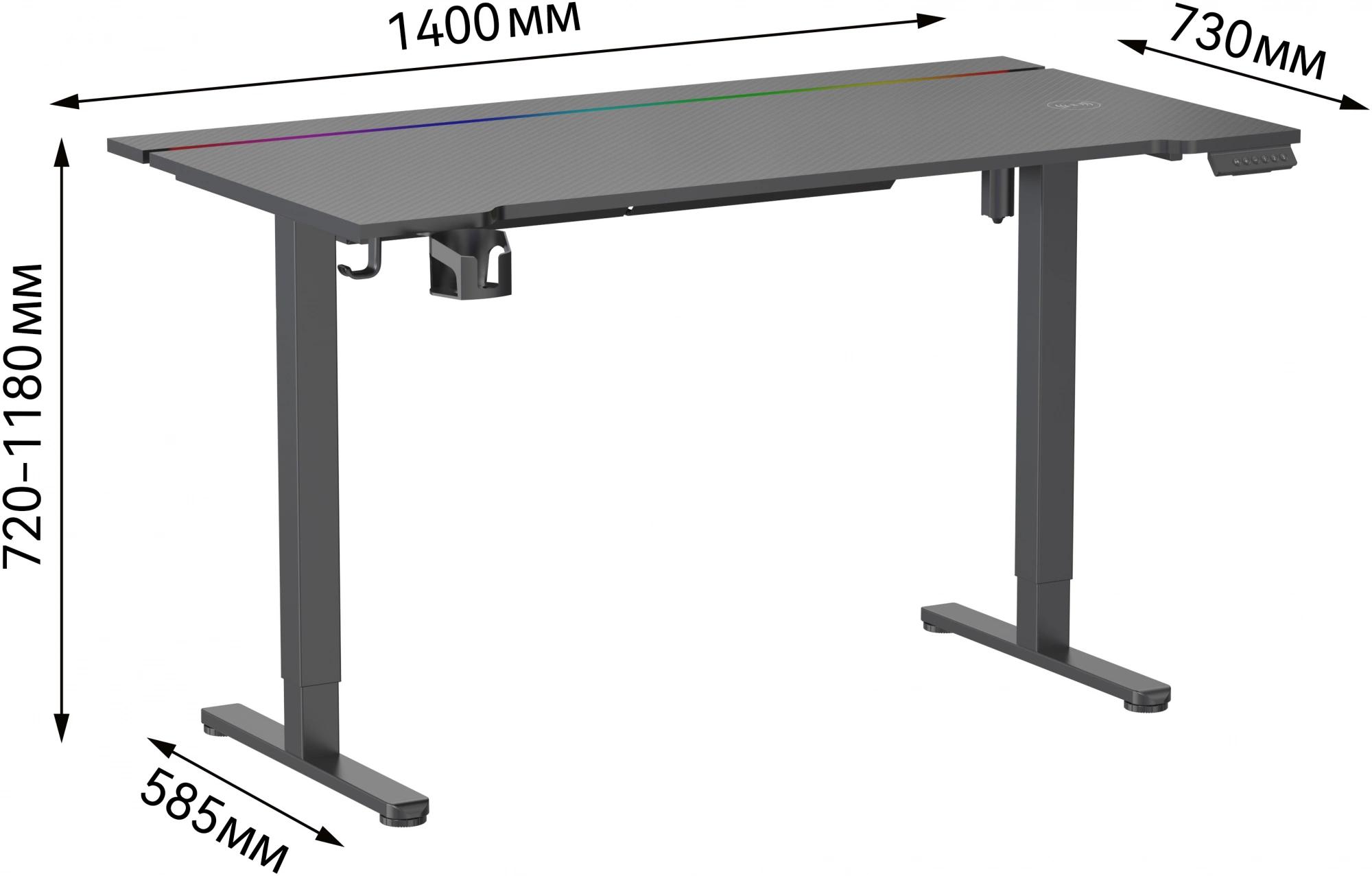 Стол для компьютера Cactus CS-EDXL-GBK столешница МДФ черный карбоновый каркас черный 140x60см