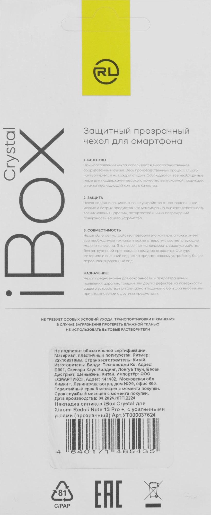 Чехол (клип-кейс) Redline для Xiaomi Redmi Note 13 Pro + iBox Crystal прозрачный (УТ000037624)
