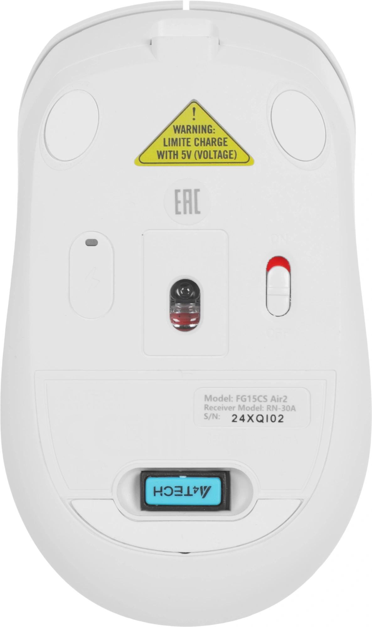 Мышь A4Tech Fstyler FG15CS Air2 белый оптическая 1200dpi silent беспров. USB для ноутбука 3but