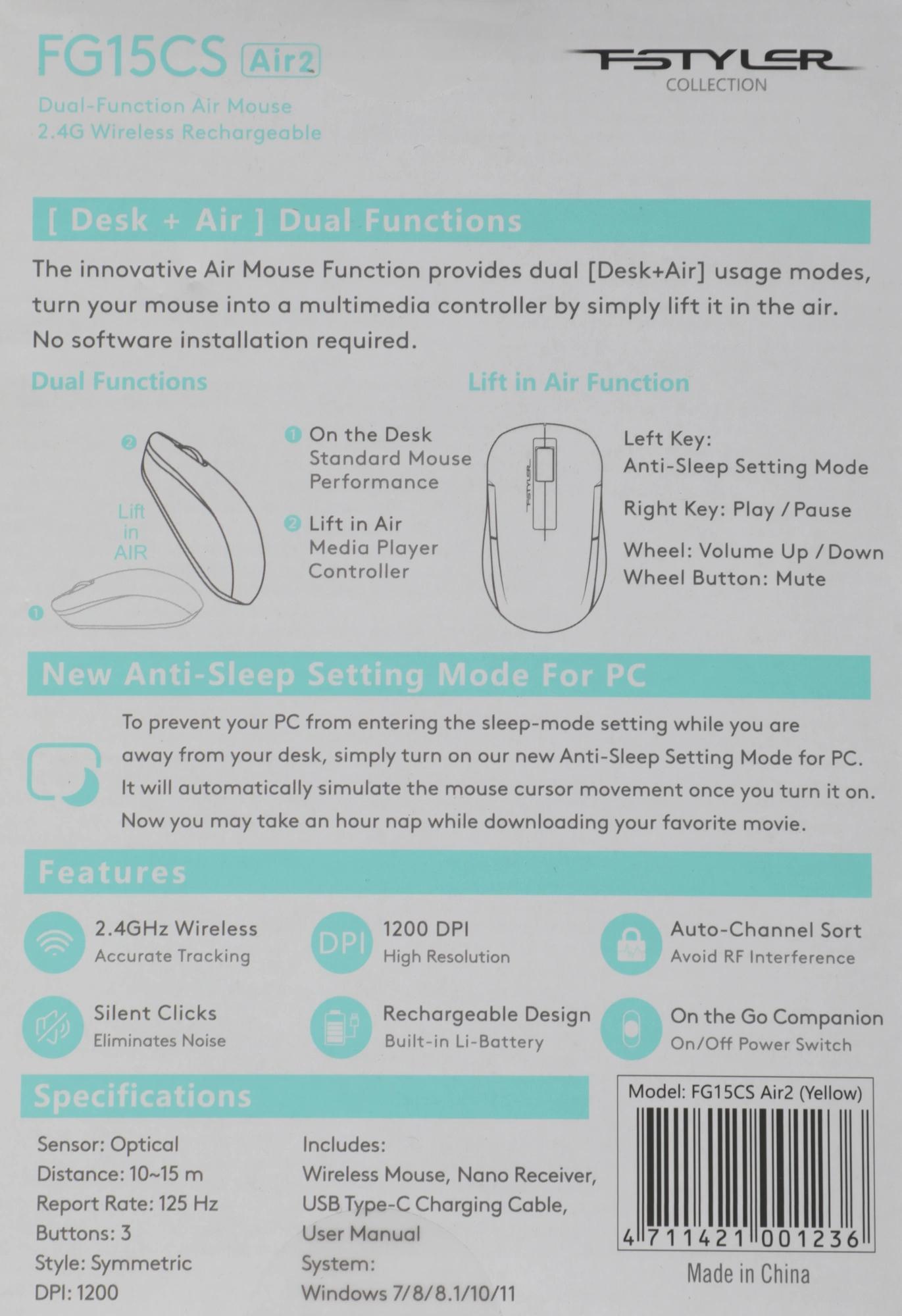 Мышь A4Tech Fstyler FG15CS Air2 желтый оптическая 1200dpi silent беспров. USB для ноутбука 3but