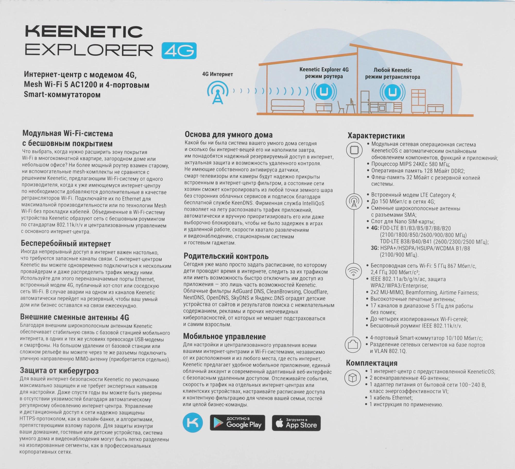Устройство, 4G-антенны, Адаптер питания, Кабель Ethernet, Инструкция по применению