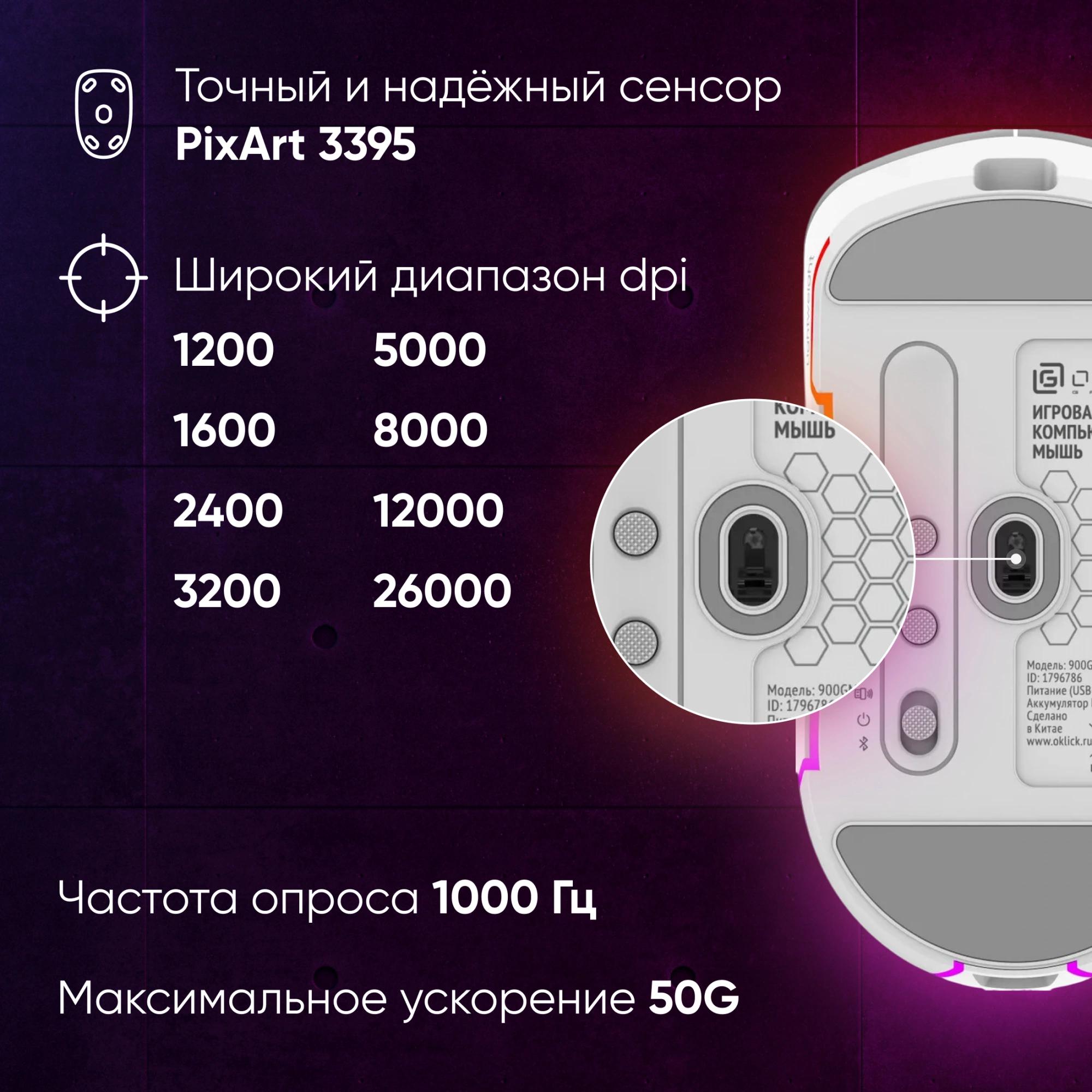 Сенсор PixArt PAW3395. Три режима - 2, 4G + BlueTooth + провод, 600 mAh, 50 млн кликов, RGB. ПО для дополнительной настройки.