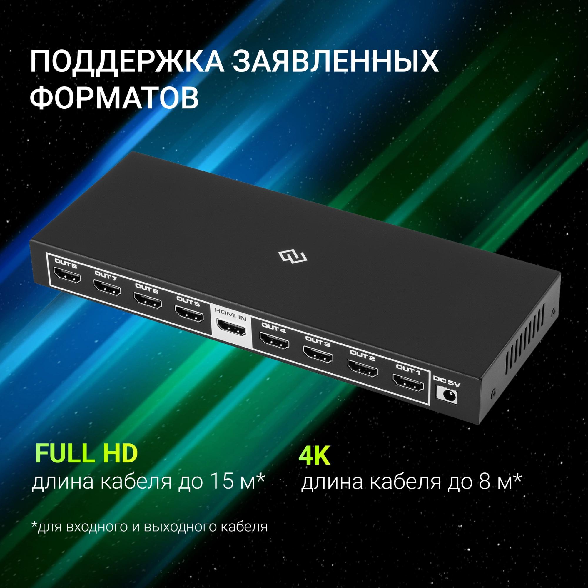 Сплиттер аудио-видео Digma DHSP-v2x8 HDMI (f)/8xHDMI (f) черный