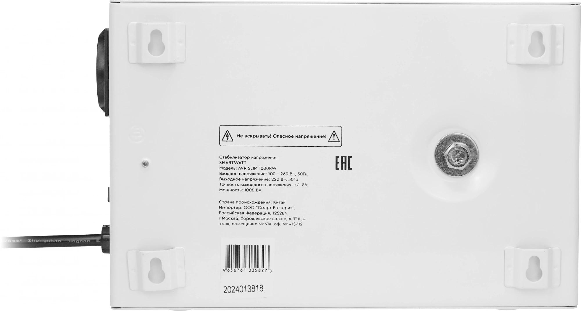 Стабилизатор напряжения Smartwatt AVR Slim 1000RW 1000ВА белый