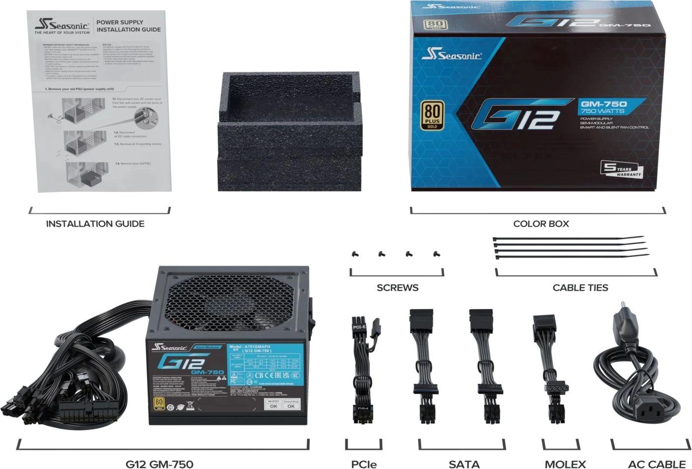 Блок питания Seasonic ATX 750W G12 GM-750 80+ gold (20+4pin) APFC 120mm fan 6xSATA RTL