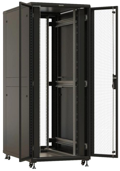 Шкаф коммутационный Hyperline (TTBR-4288-DD-RAL9004) напольный 42U 800x800мм пер.дв.перфор. задн.дв.перфор. 2 бок.пан. 1000кг черный 710мм 123.38кг 2055мм IP20 сталь