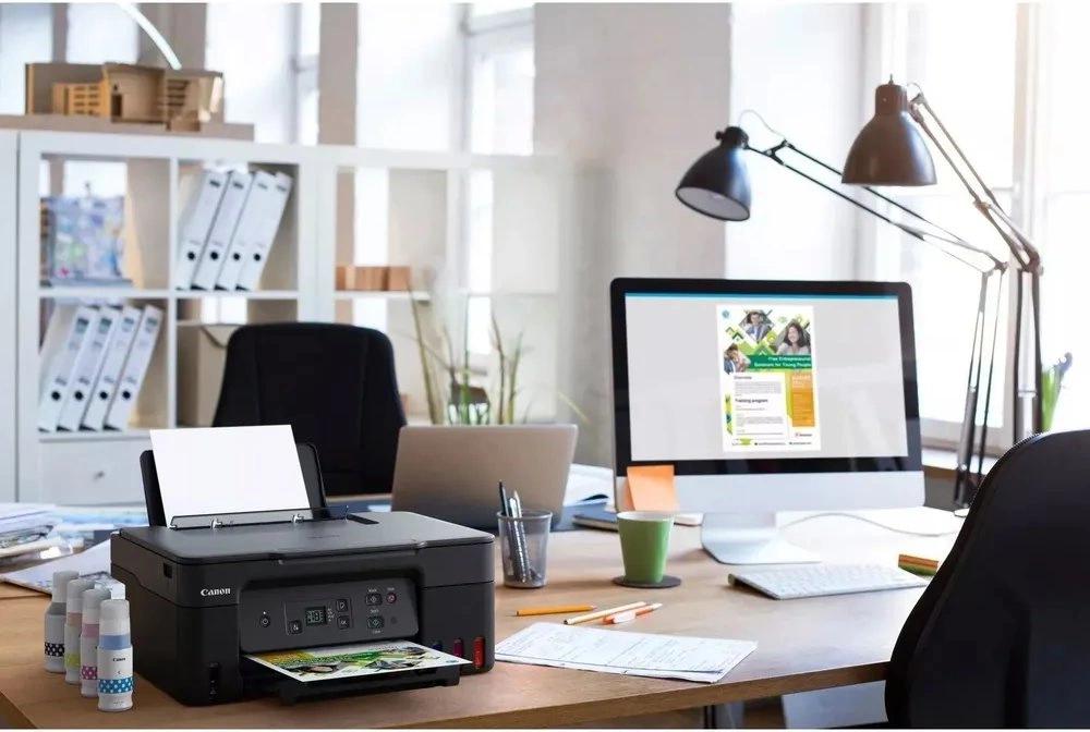 МФУ PIXMA G2470 с пополняемыми емкостями для чернил, контейнеры с чернилами (4 цвета), Кабель питания, Руководства пользователя и другие документы