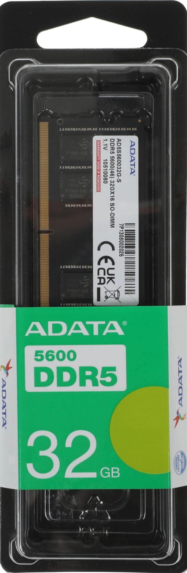 Память DDR5 32GB 5600MHz A-Data AD5S560032G-S RTL PC5-44800 CL46 SO-DIMM 262-pin 1.1В single rank Ret