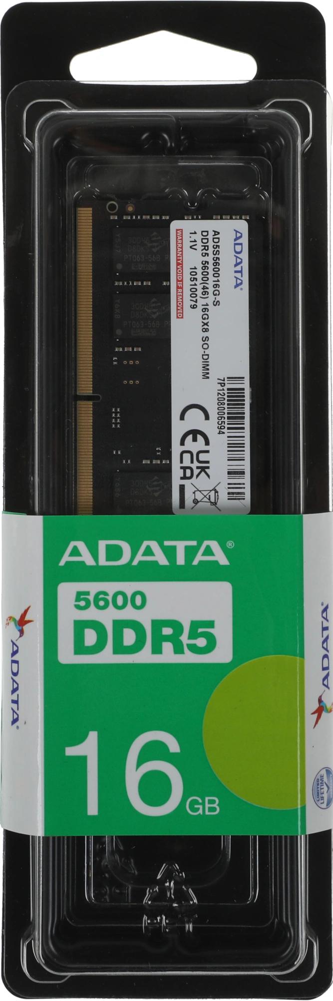 Память DDR5 16GB 5600MHz A-Data AD5S560016G-S RTL PC5-44800 CL46 SO-DIMM 262-pin 1.1В single rank Ret