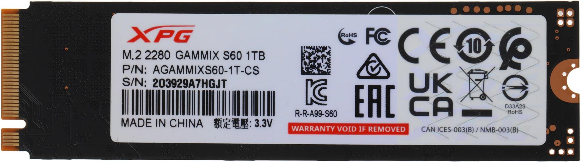 Накопитель SSD A-Data PCIe 4.0 x4 1TB AGAMMIXS60-1T-CS Gammix S60 XPG M.2 2280