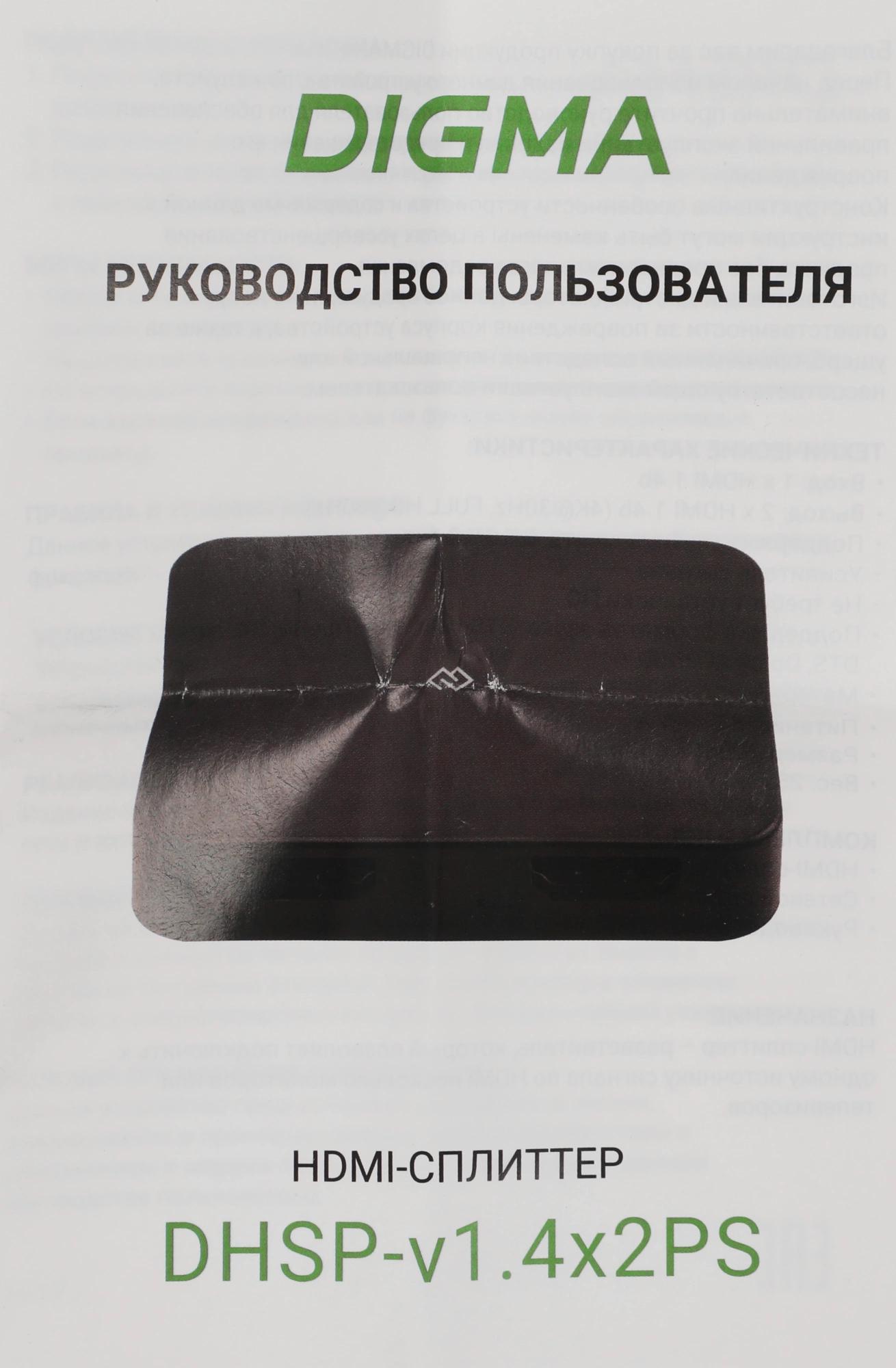 Сплиттер аудио-видео Digma DHSP-v1.4x2PS HDMI (f)/2хHDMI (f) черный