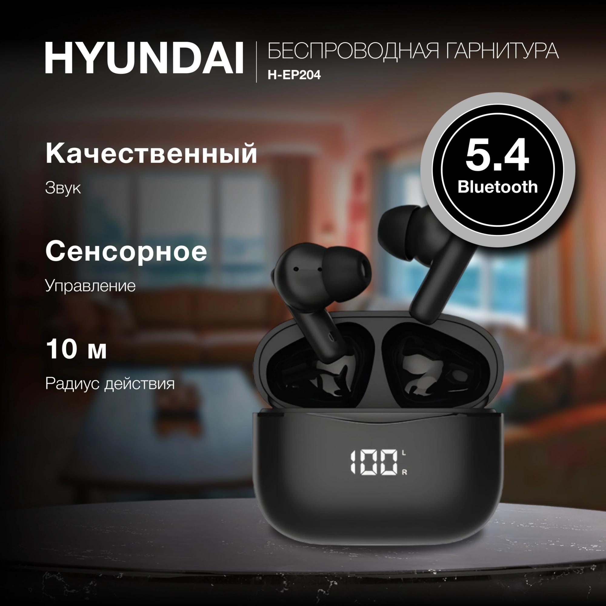 Гарнитура внутриканальные Hyundai H-EP204 черный беспроводные bluetooth в ушной раковине (HEP204)
