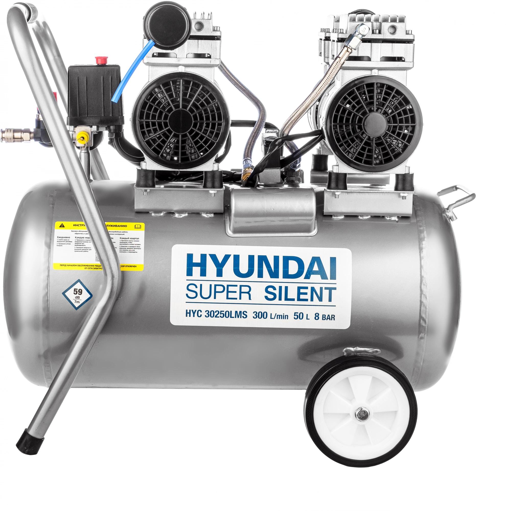 Компрессор поршневой Hyundai HYC 30250LMS безмасляный 300л/мин 50л 2000Вт серебристый/черный