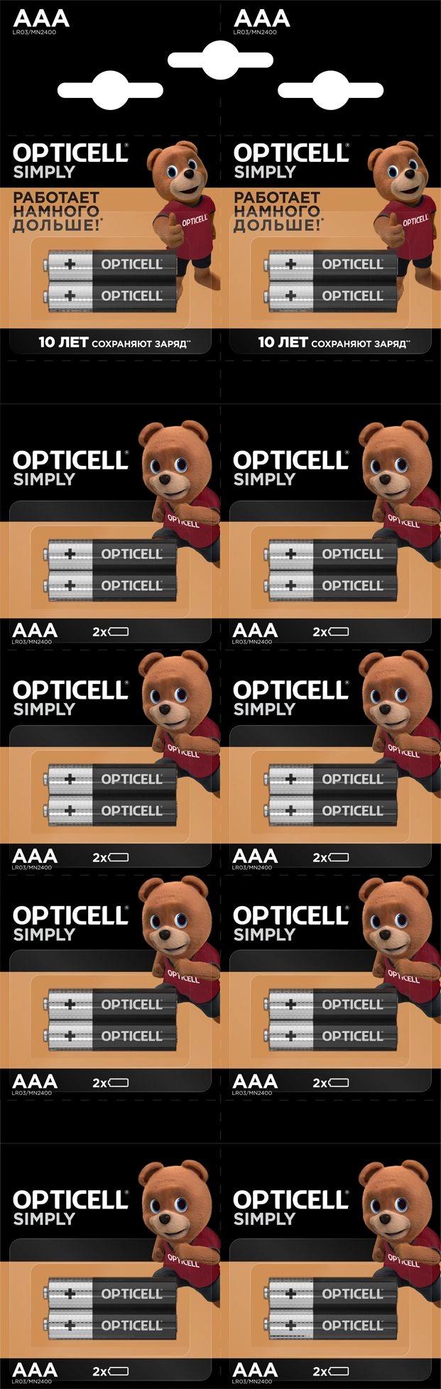 Батарейки базовой линейки Opticell размера AAA — работают дольше, намного дольше* (*по сравнению с солевой батарейкой типа ААА. Результаты могут варьироваться в зависимости от устройства и интенсивности использования).