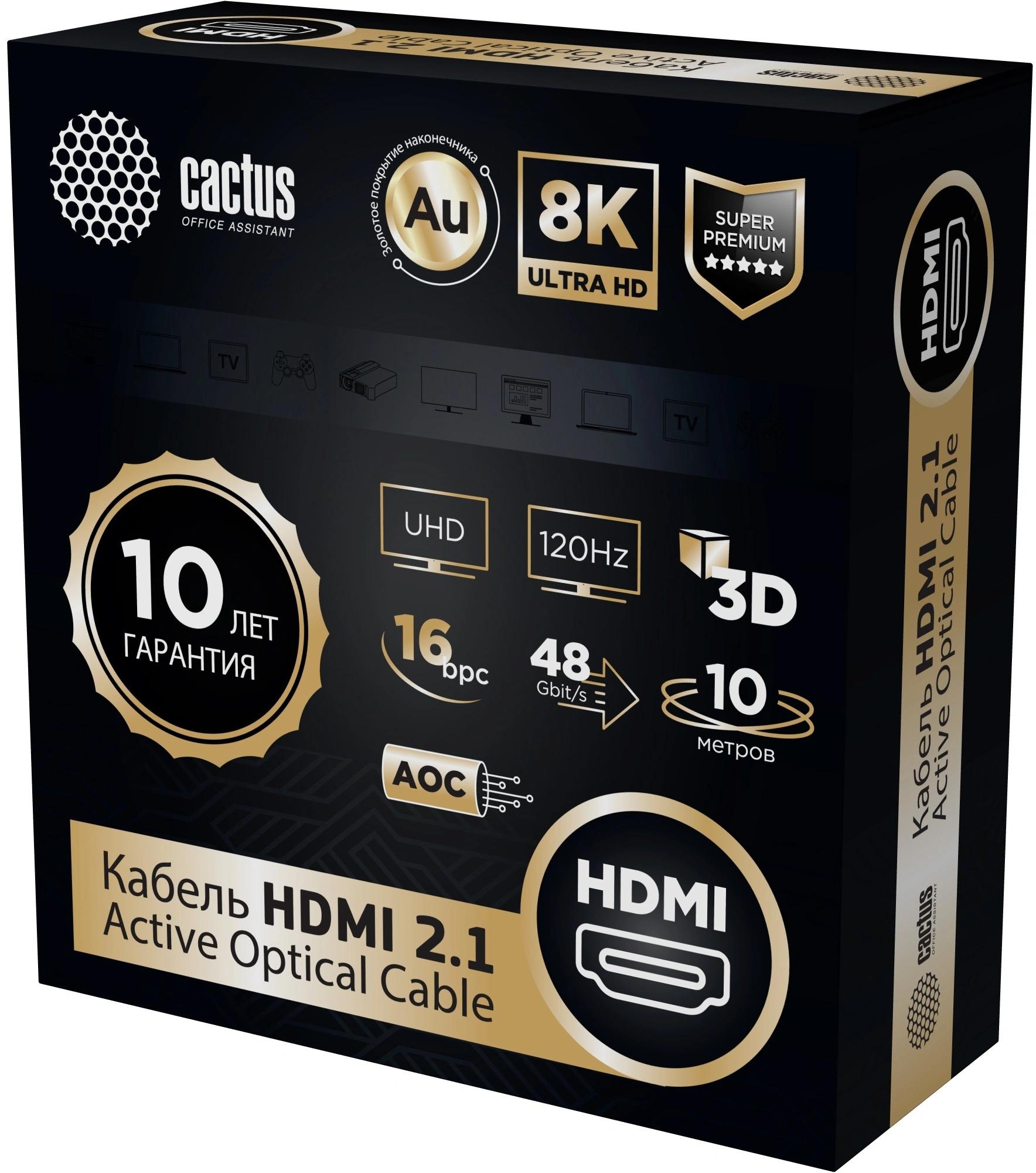 Кабель аудио-видео Cactus CS-HDMI-AOC-2.1-10 HDMI (m)/HDMI (m) 10м. позолоч.конт. черный