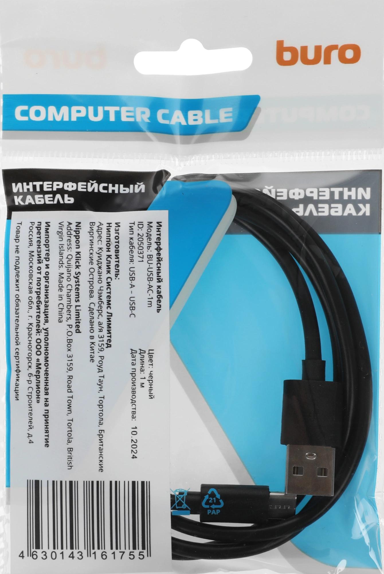 Кабель Buro BU-USB-AC-1M USB (m)-USB Type-C (m) 1м черный