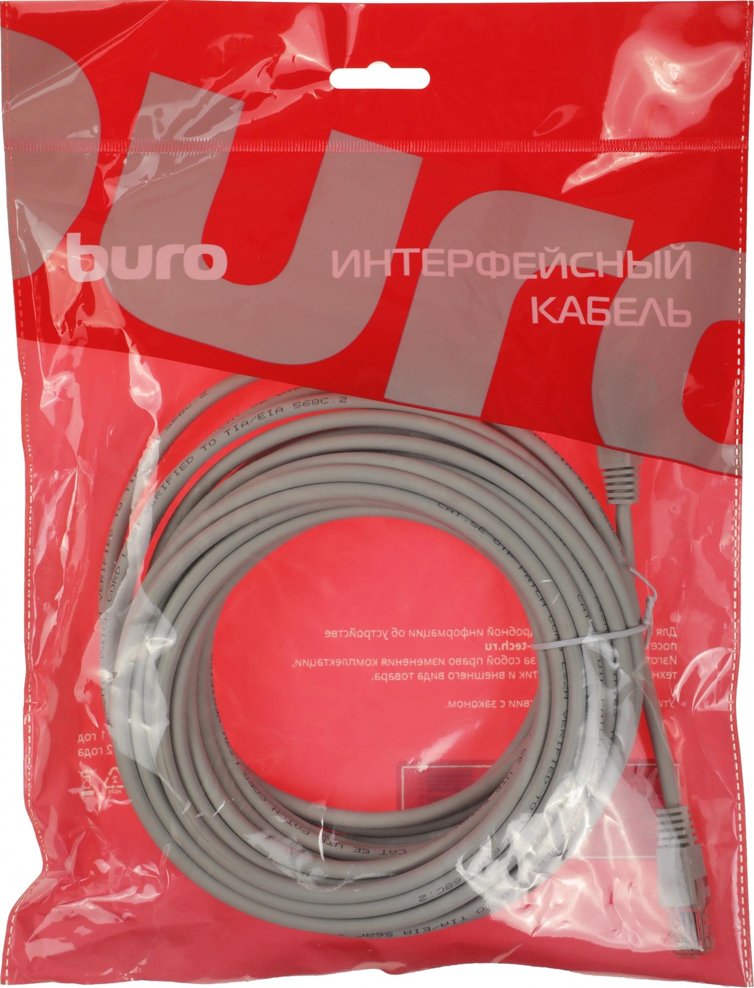 Патч-корд Buro UTP-5E-10M-G-LSZH 1Гбит/с UTP 4 пары cat.5E 10м серый RJ-45 (m)-RJ-45 (m)
