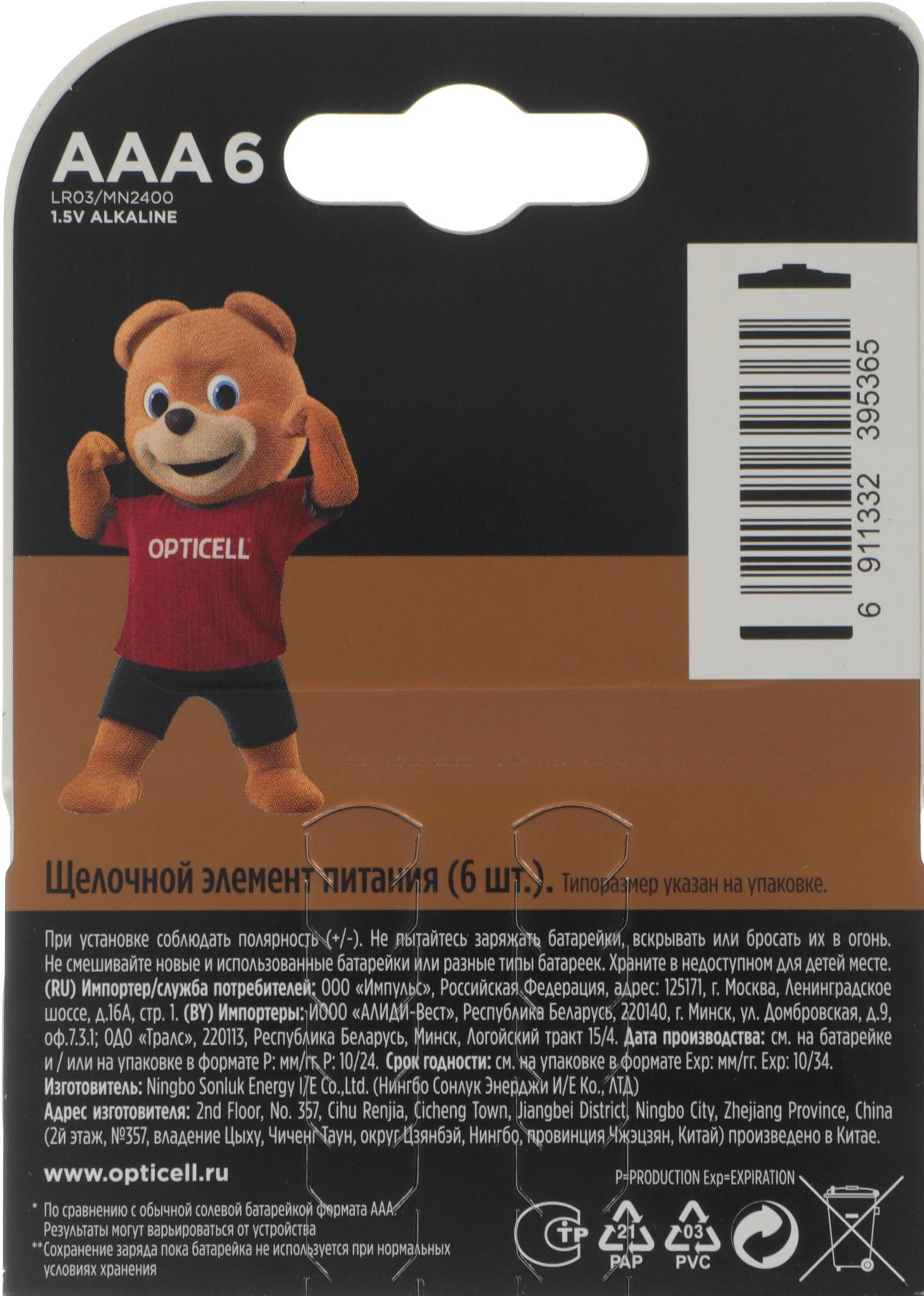 Батарея Opticell Basic LR03 AAA (6шт) блистер
