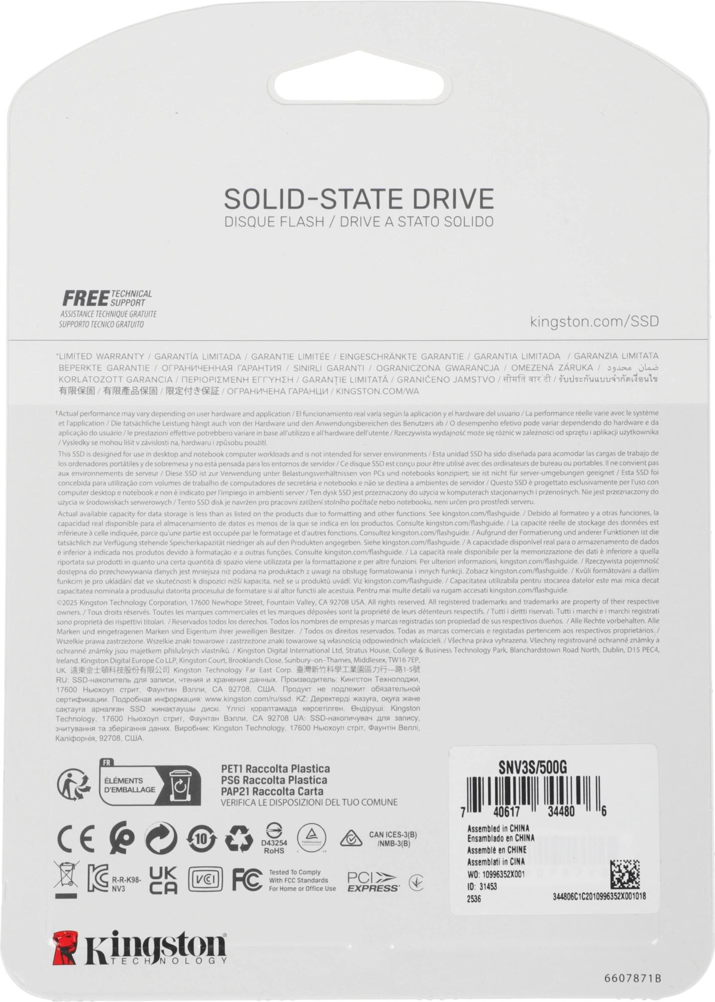 Накопитель SSD Kingston PCIe 4.0 x4 500GB SNV3S/500G NV3 M.2 2280