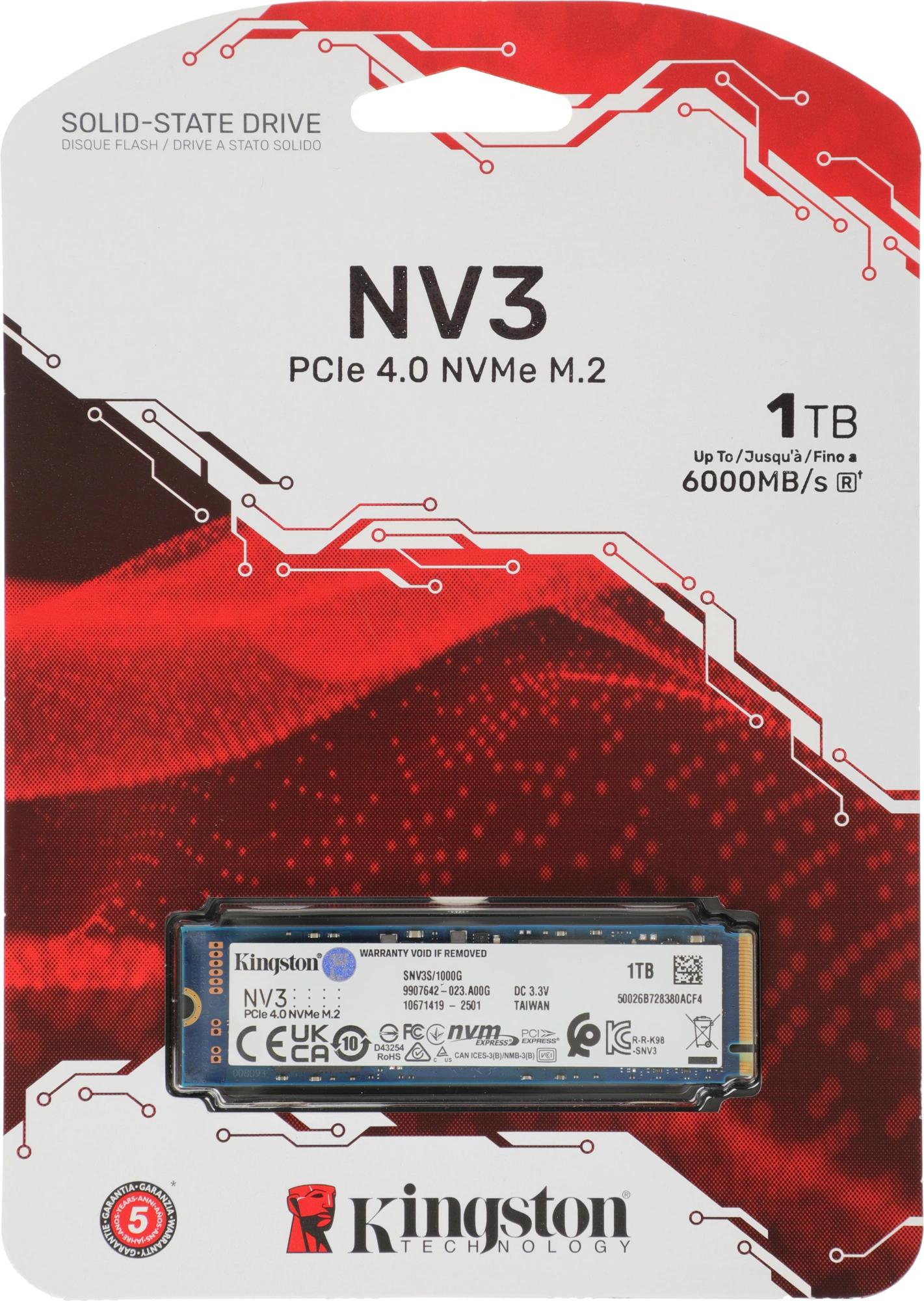Накопитель SSD Kingston PCIe 4.0 x4 1TB SNV3S/1000G NV3 M.2 2280