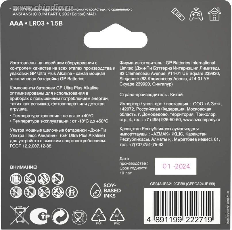 Батарея GP Ultra Plus Alkaline 24AUPA21-2CRB8 AAA (8шт) блистер