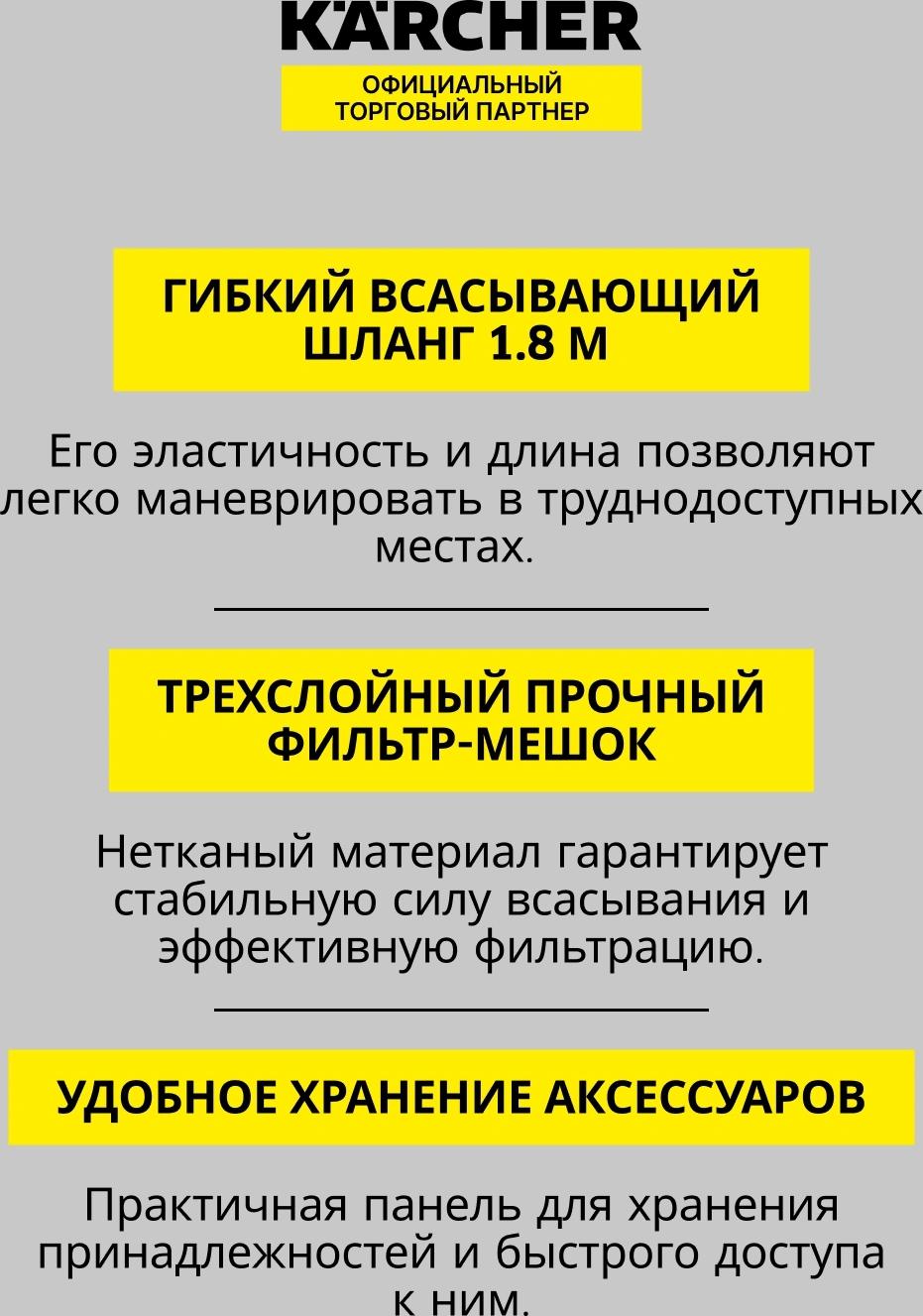 Строительный пылесос Karcher WD 2 V-15/4/18 1000Вт (уборка: сухая/влажная) желтый