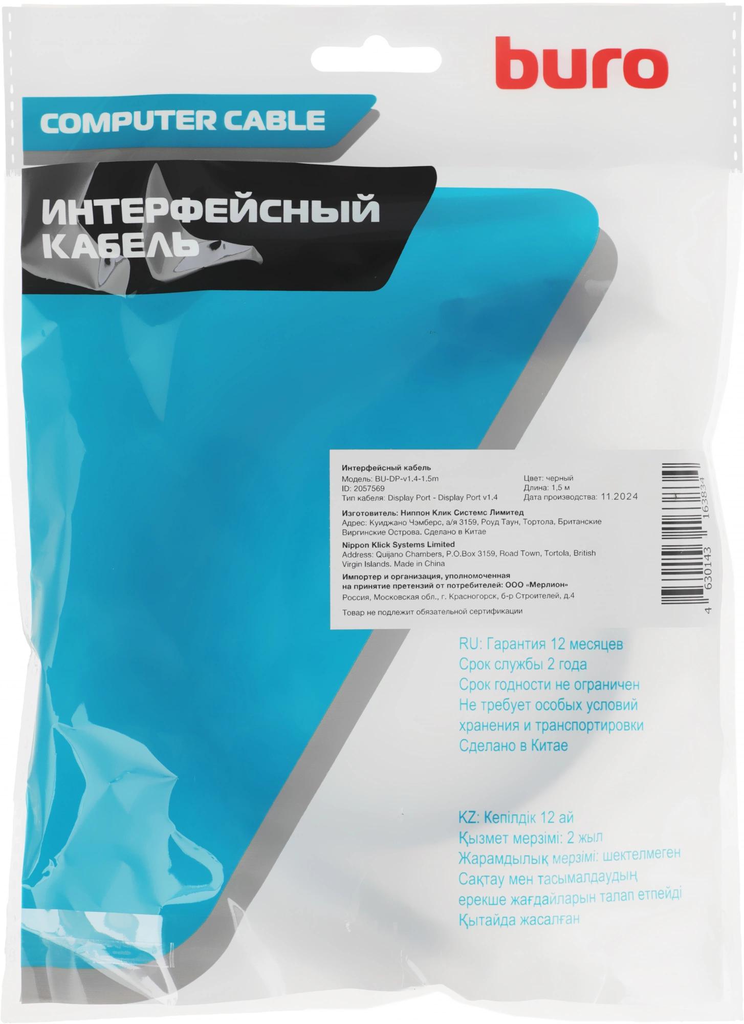 Кабель аудио-видео Buro BU-DP-v1.4-1.5m DisplayPort (m)/DisplayPort (m) 1.5м. черный