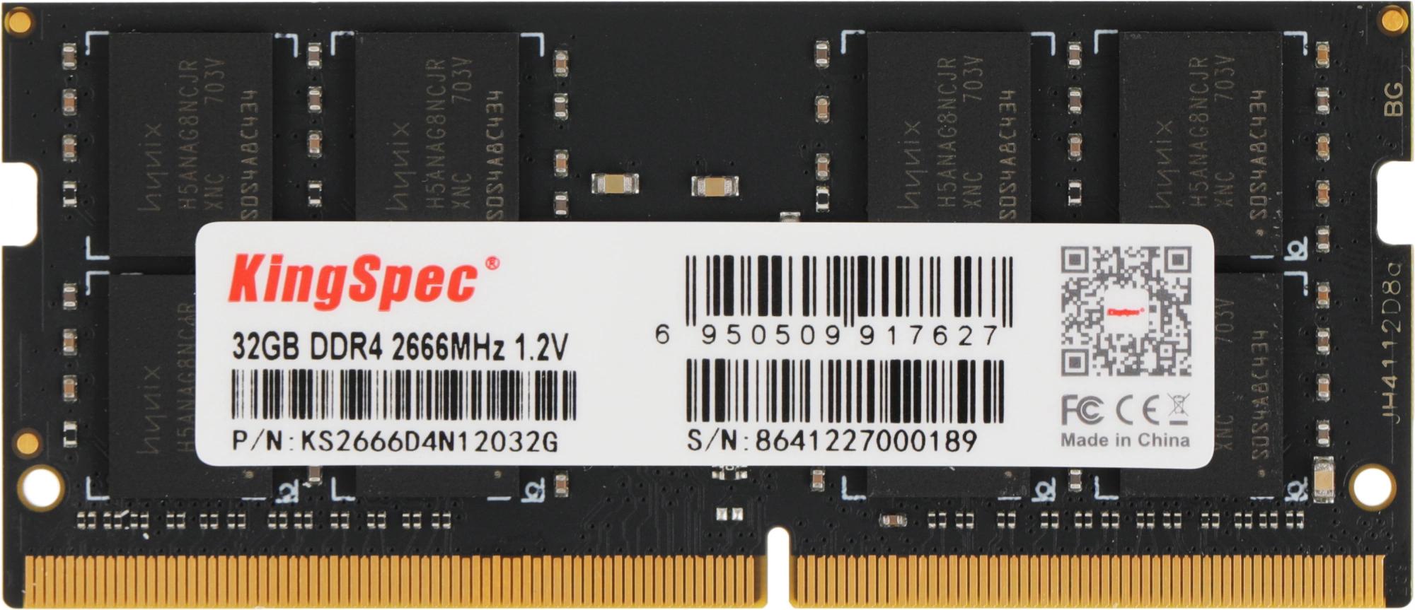 Память DDR4 32GB 2666MHz Kingspec KS2666D4N12032G RTL PC4-21300 SO-DIMM 260-pin 1.2В single rank Ret