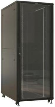 Шкаф коммутационный Hyperline (TTBR-4288-AS-RAL9004) напольный 42U 800x800мм пер.дв.стекл задн.дв.спл.стал.лист 2 бок.пан. 1000кг черный 710мм 2055мм IP20 сталь