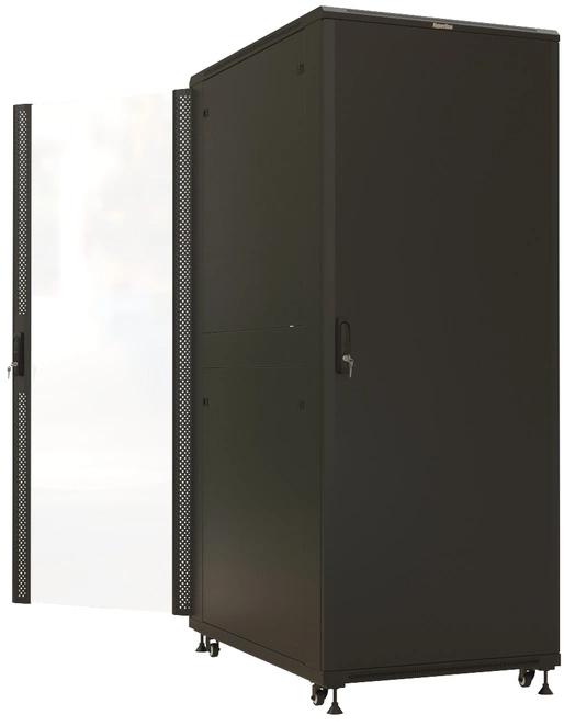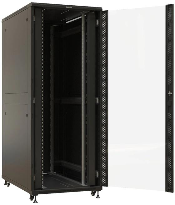 Шкаф коммутационный Hyperline (TTBR-4288-AS-RAL9004) напольный 42U 800x800мм пер.дв.стекл задн.дв.спл.стал.лист 2 бок.пан. 1000кг черный 710мм 2055мм IP20 сталь