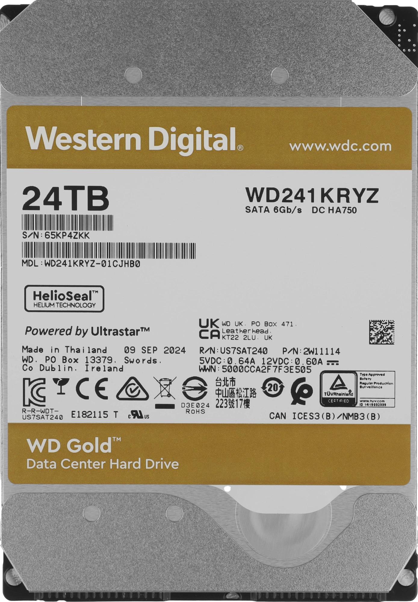 Жесткий диск WD SATA-III 24TB WD241KRYZ Server Gold 512E (7200rpm) 512Mb 3.5"