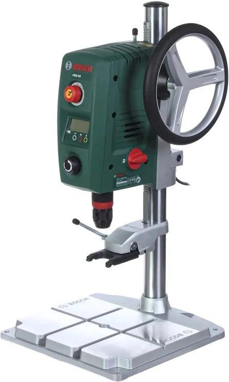 Сверлильный станок Bosch PBD 40, торцевой ключ, быстроразъемный зажим, параллельный упор, руководство пользователя, коробка.
