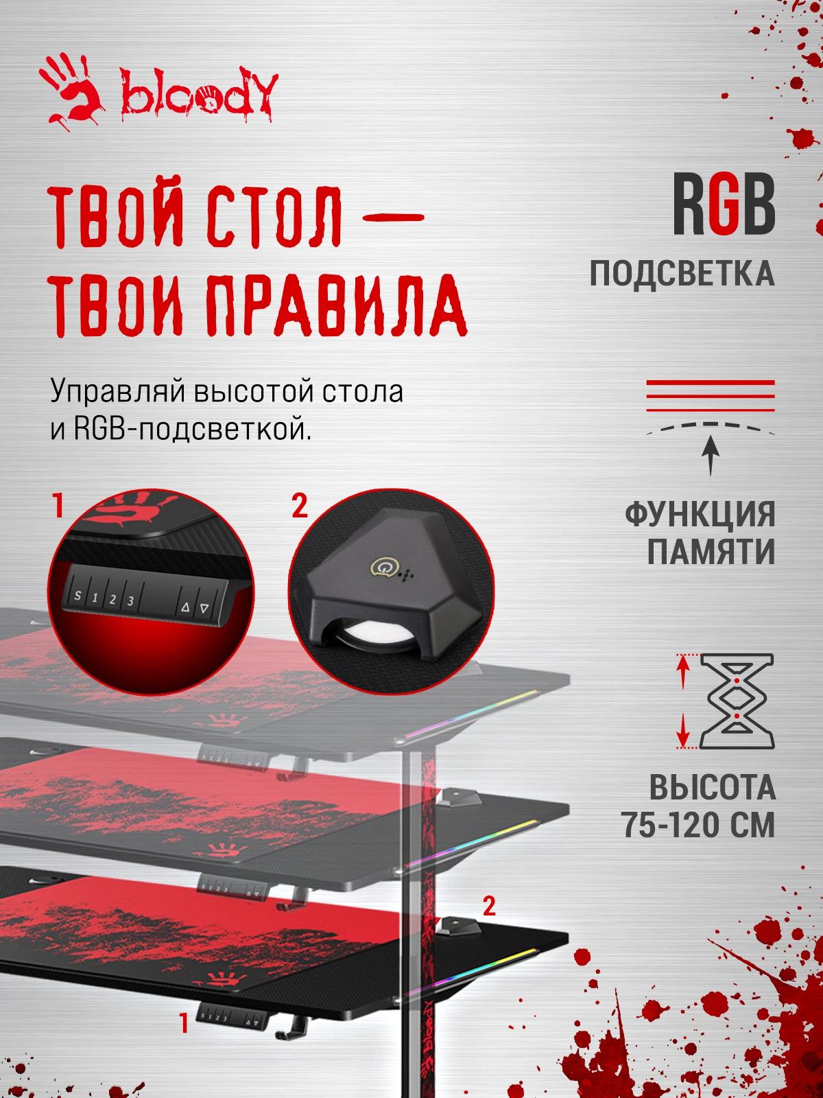 Стол игровой Bloody BD-TB301 электропривод столешница ЛДСП карбон каркас черный 140x80см
